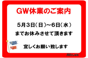 【GW休業のご案内】 5月3日(日)~6日(水)までお休みさせて頂きま 続きを読む…